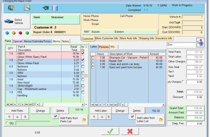 repair orders, inventory, labor items to your