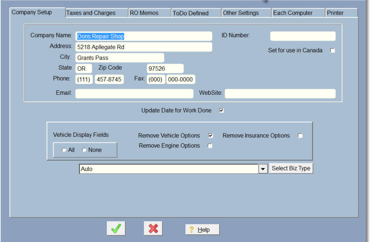 Repair Order Entry Screen